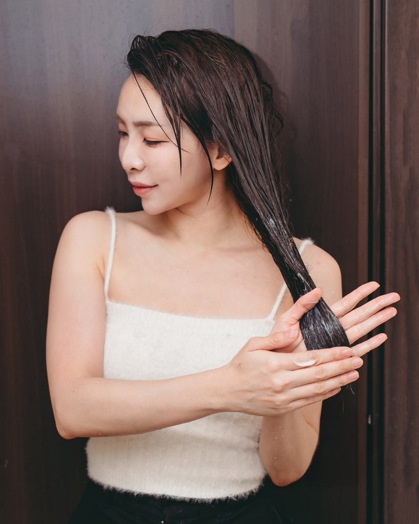 我會在頭髮洗乾淨後,塗抹於頭髮中段到髮尾,